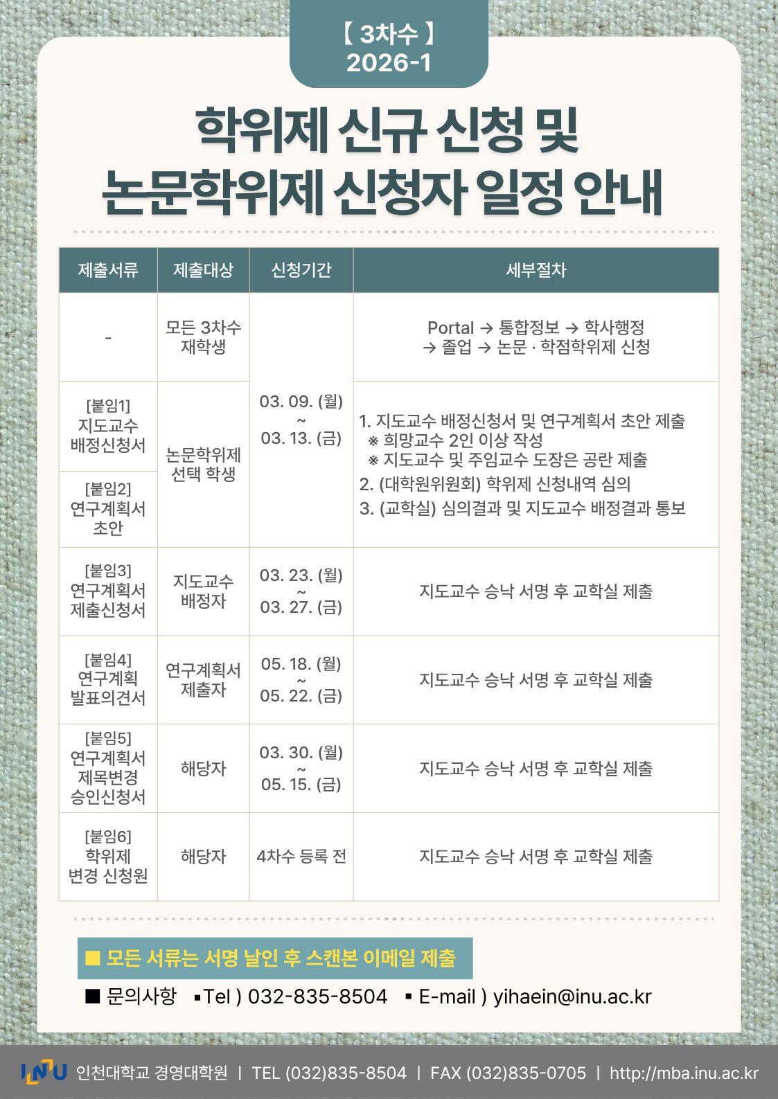 [3차수] 2026-1학기 MBA 학위제 신규 신청 및 논문학위제 신청자 일정 안내